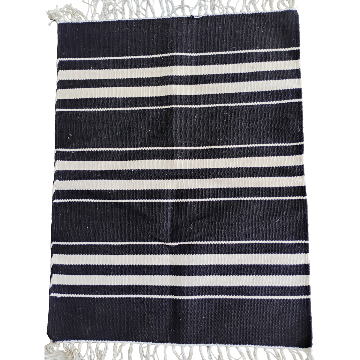Upgrade your space with this beautifully handcrafted Cotton-by-Cotton Rug, designed using premium cotton threads for a soft, cozy, and warm texture. The clean black-and-white stripe pattern gives a modern yet handcrafted feel, perfect for bedrooms, entryways, living rooms, and even yoga or meditation spaces.